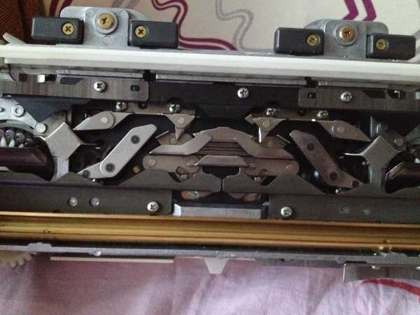 язычек стоит правильно, все двигается. Там просто уже далеко не первый ряд. Вяжу все как надо. Первый ряд в одну нить, потом все переключаю и уже в две нити. Просто ничего уже не понимаю, почему у меня на пробном вязании все получилось?