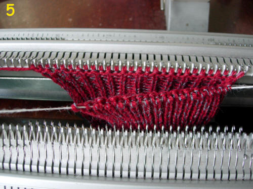 В моем примере на след идет 16 петель,я поочередно выдвагаю в ВНП 5 петель,а в середине