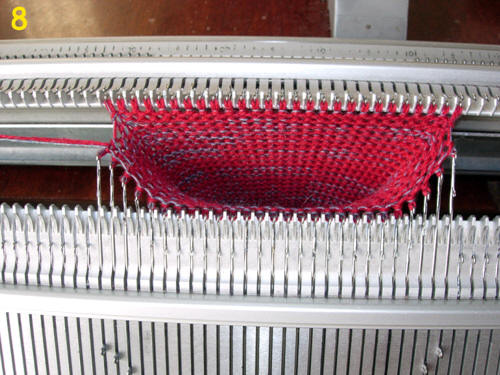 перекидываем все петли на основную игольницу и провязываем один ряд кулиркой.