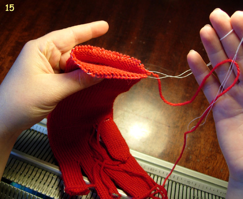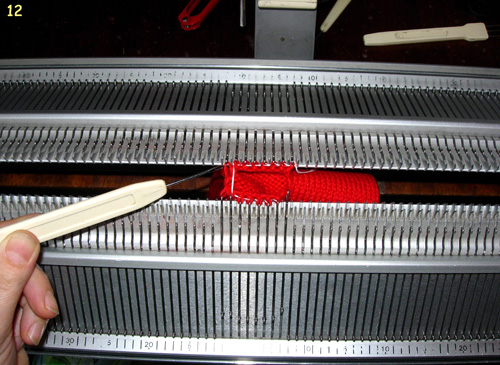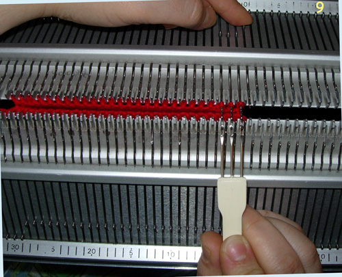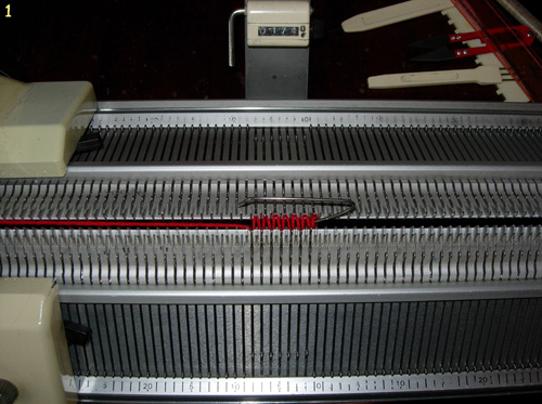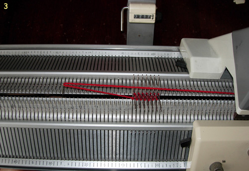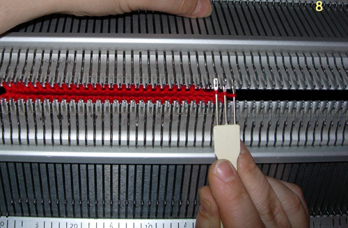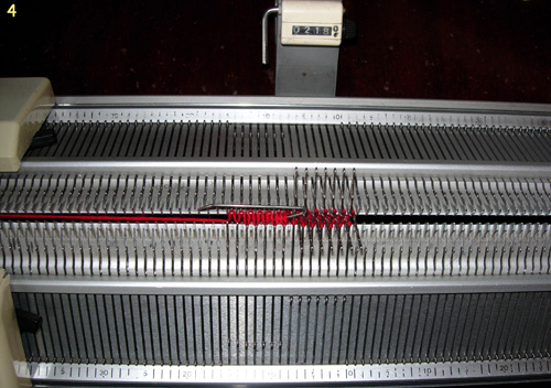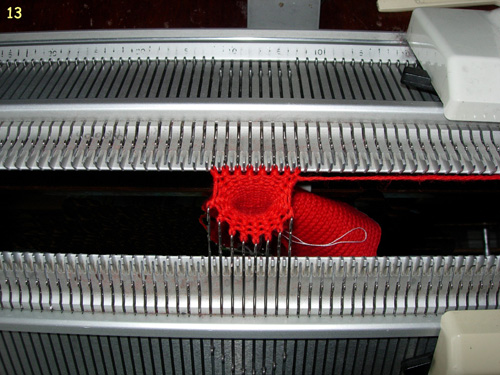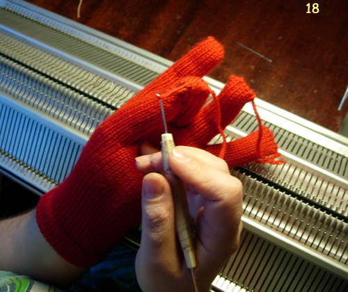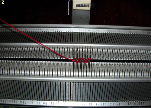 3. Начинаем вязание мизинца. Каретки ставим в режим кругового вязания