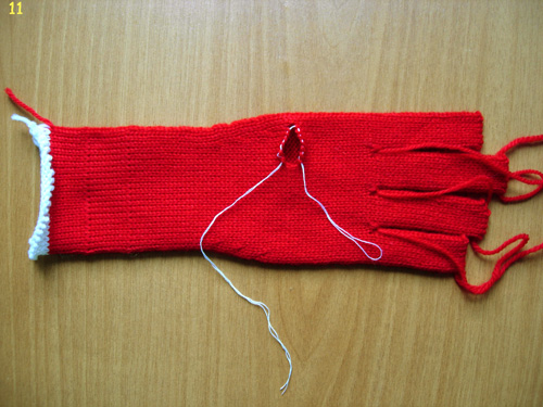 16. Затягиваем начальный ряд каждого пальчика и по изнанке убираем нити.