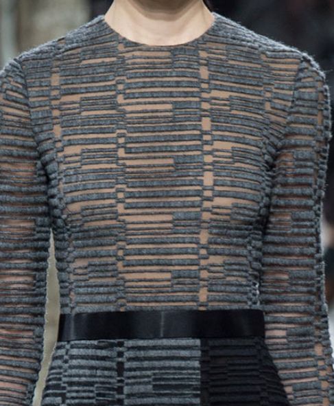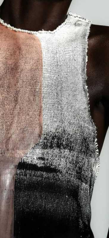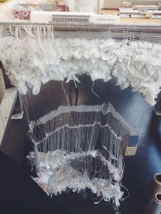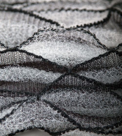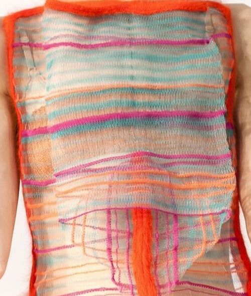 The Woolmark Company( победитель конкурса молодых дизайнеров)- пальто из завойлоченных шерстяных волокон связано в технике вивинга.