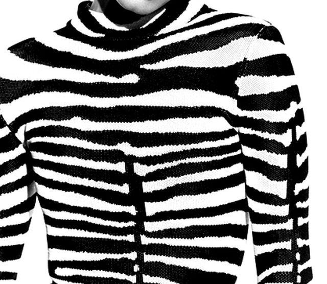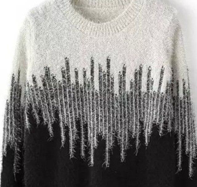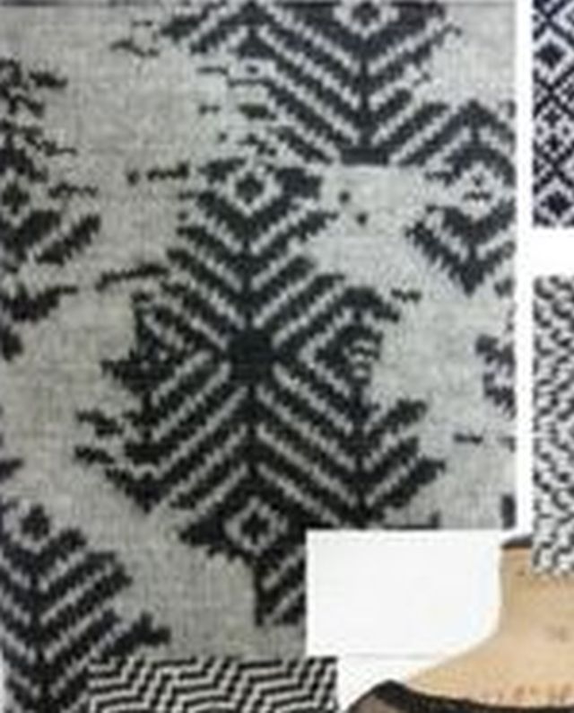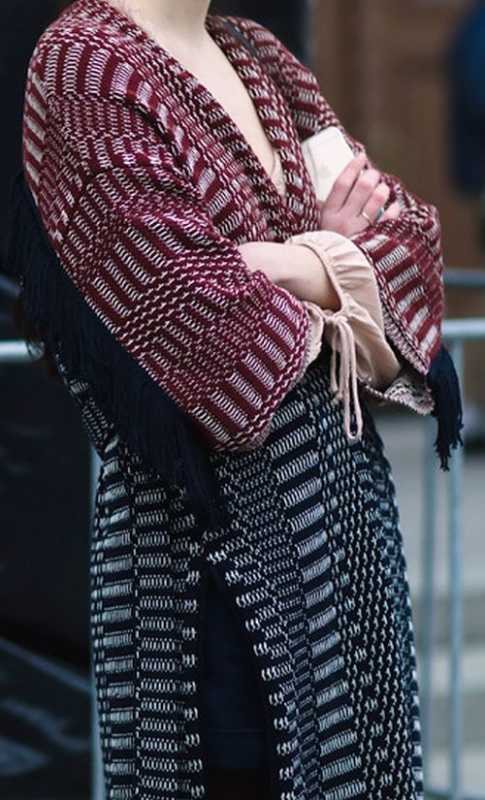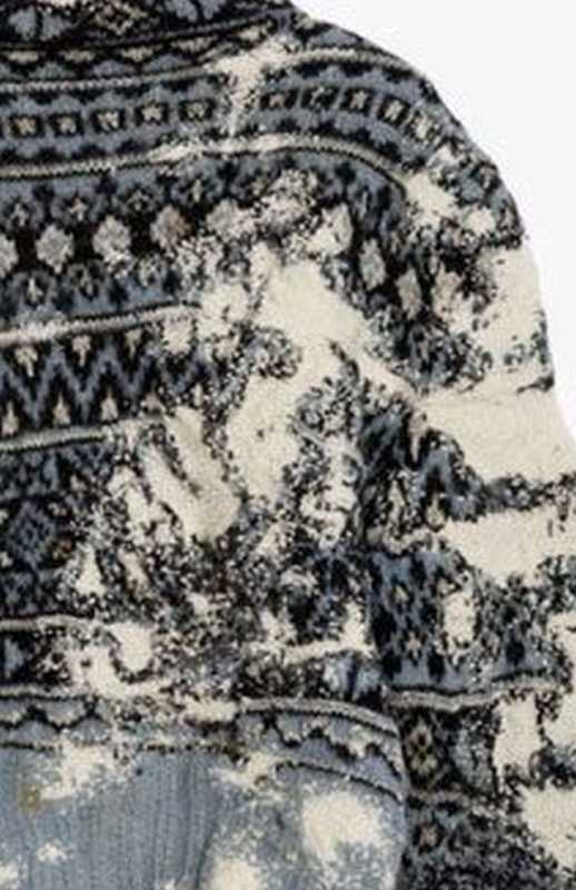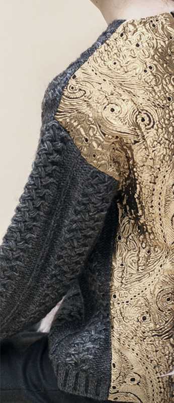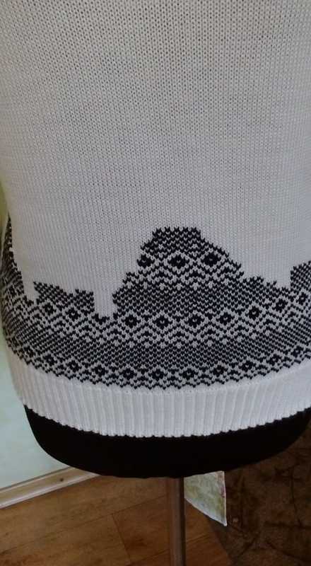 Машинный жаккард- очень модный , особенно интересен жаккард с использование ограничителей вязки внутри полотна , которые располагаются совершенно произвольно- этот приём "разбивает" правильный машинный ритм перфокарты и очень ценится .
