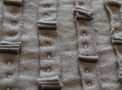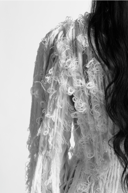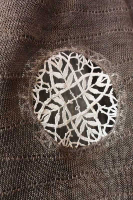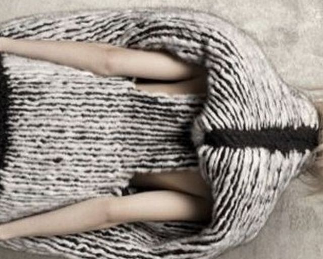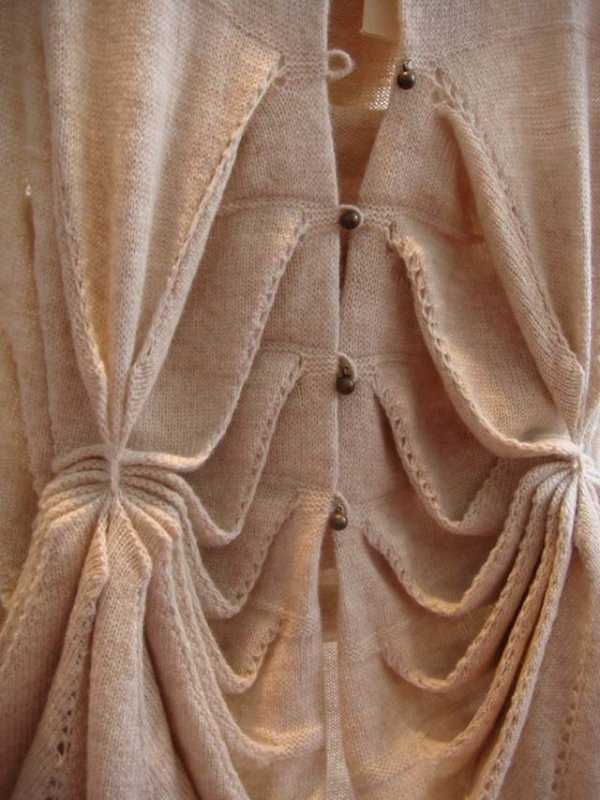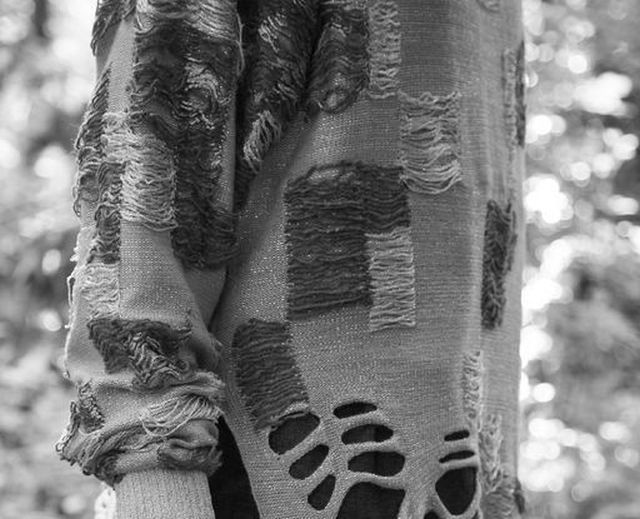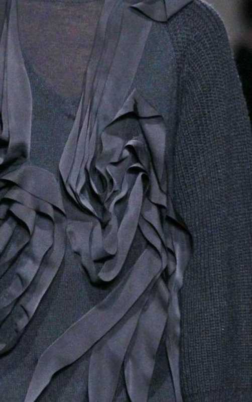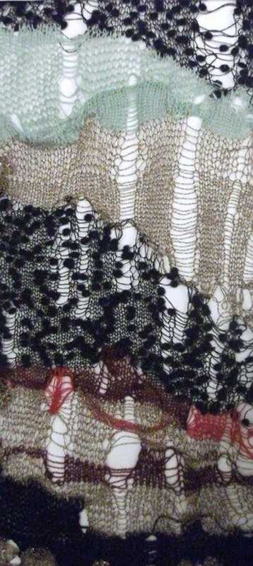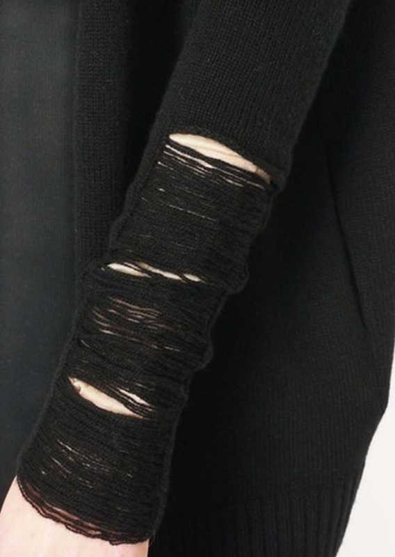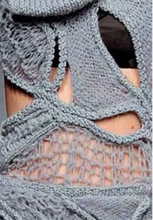 В моде вообще и в трикотаже, в частности, очень заметен т.н. "маргинальный шик"(рваные края, спущенные петли мятые полотнища, непрокрас принтов и т.д.):