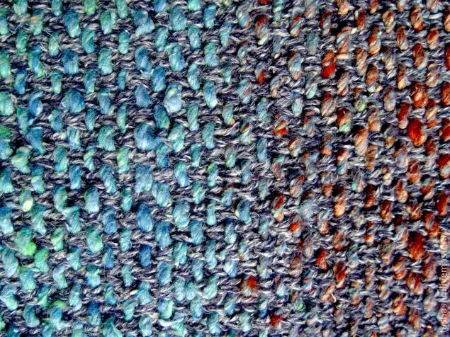 Думаю,что это махровое вязание на двухфонтурной машине.рисунок смотрится на изнанке-мононить +шерстяная пряжа разнвх цветов.