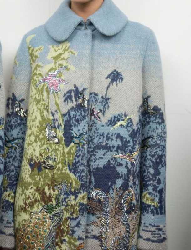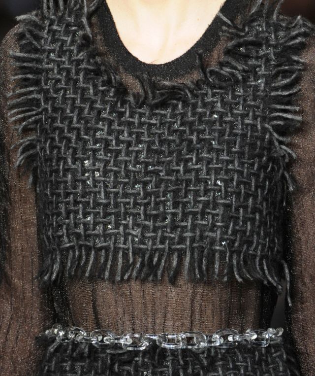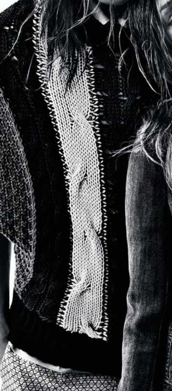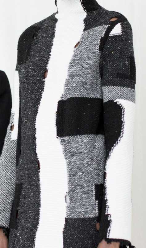 Если вязать ОФЖ по какой-либо перфокарте с геометрическим орнаментом, используя ограничительные кулачки, то получится необычная "вышивка"( этот джемпер из последней коллекции Карла Лагерфельда, конечно,связан на электронной машине)