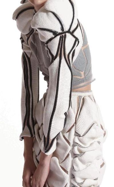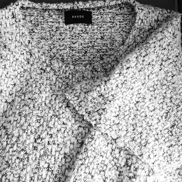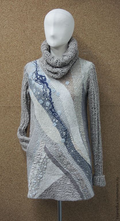 Бело-чёрный меланж, произвольный разбор игл и сдвиг игольниц через ряд- дают интересную фактуру , а фирма кроит и сшивает машинное полотно.