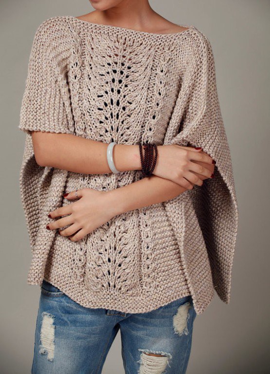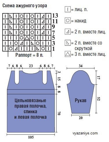 Летний джемперок: заработка края и частичное вязание контрастной нитью - дают эту красивую линию низа