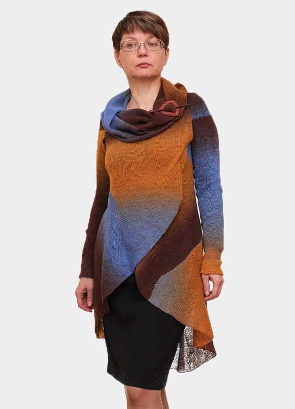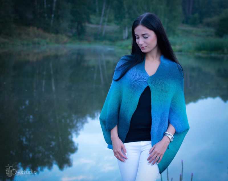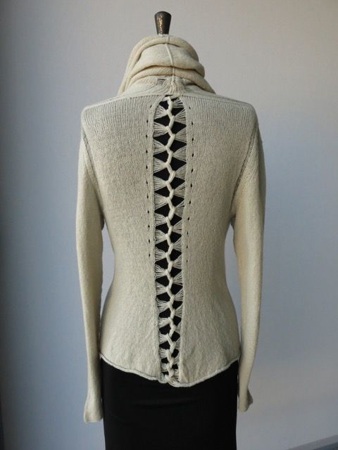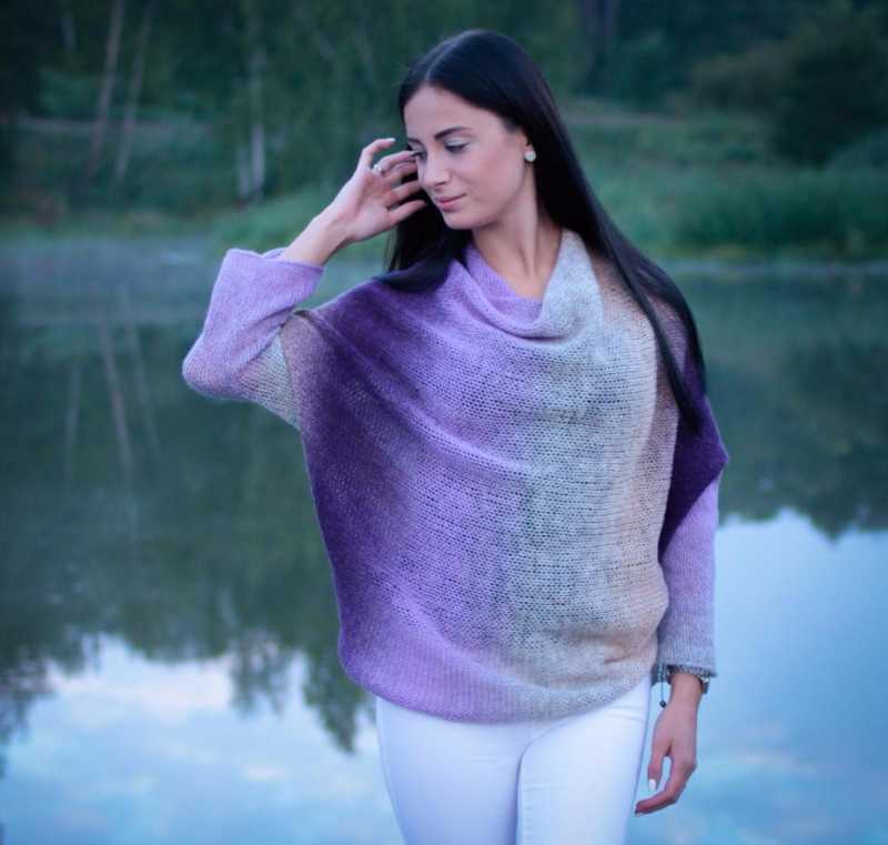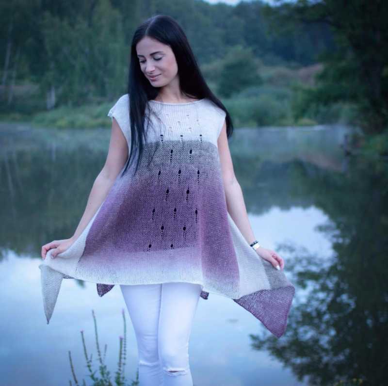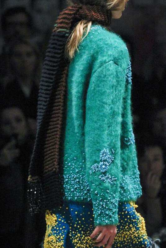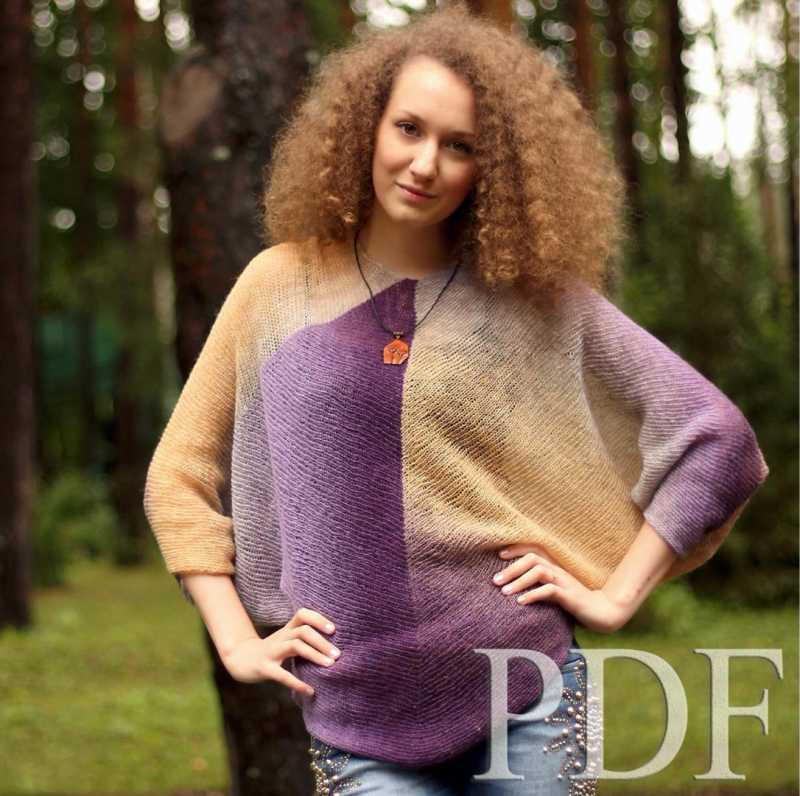 На первом фото полоса из отделочной пряжи вяжется на машине отдельно, затем сшивается с деталями рукава