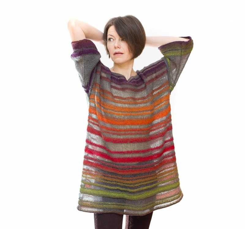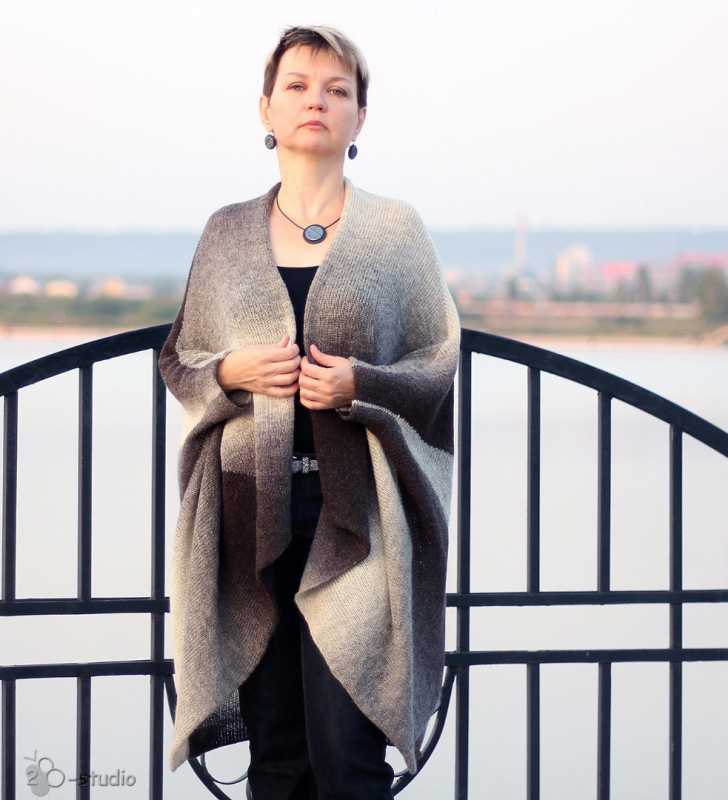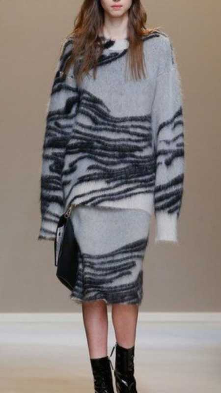 ( можно связать интарсией регулярно: бело-серо-чёрной, а можно чёрные полосы связать потом крючком и вычесать)