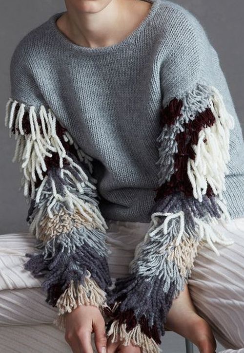 Бахрому можно привязывать крючком на готовой вещи, а можно вязать на машине. вручную провязывая и закрепляя кисть бахромы...