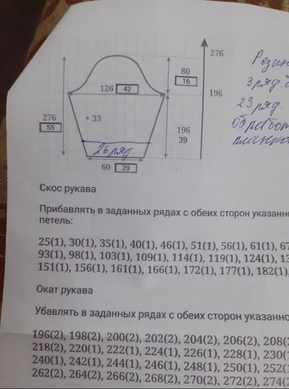 НЕ ПОПАСТЬ В РАЗМЕР МОЖНО ПО НЕСКОЛЬКИМ ПРИЧИНАМ - перед и спинка чуть больше? - больше это что? шире или длиннее? если образец правильно связан, правильно прощитан  то тогда в основном все верно вяжется , если вы потянули немного вниз то деталь будет длиннее  , а если вы делали припуск не малый на облегание то можно ничего и не понять ,  рукав короче это по тому что связан полуоблигающий а вы задаете форму шире -вот он и подскакивает, я считаю что на гладильной доске тяжело правильно по размеру выкройки разложить деталь, если что то не так извините