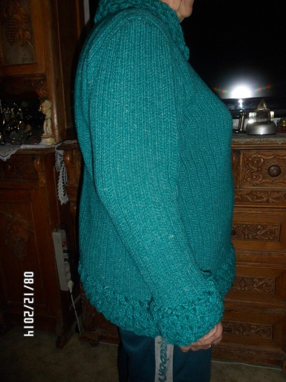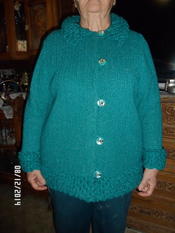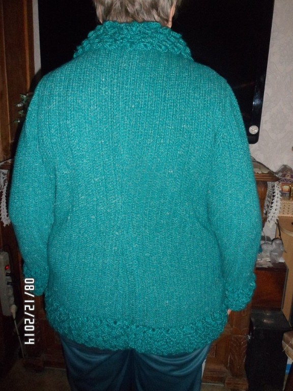 Девочки, всем привет, выкладывают новую похвастушку. Кофту я связала давно а вот отделку я связала недавно. В роли манекена моя мамочка.