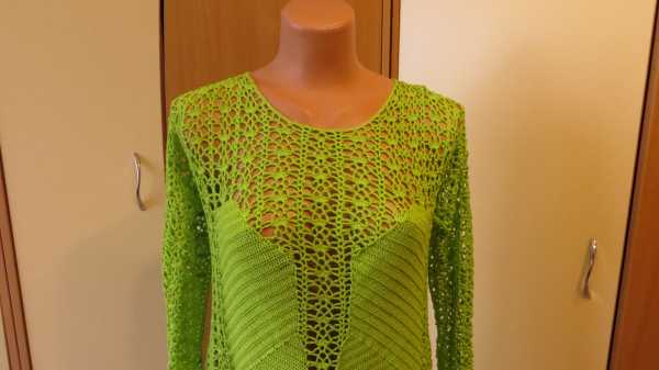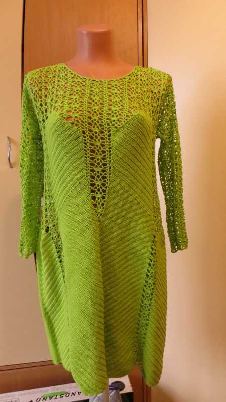 платье связано для очень высокой девушки, поэтому моему манекену безнадежно велико и даже грудь не прикрывает