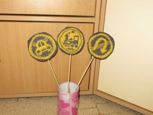 А фантазия - я всю ночь думала, что можно сделать, просили именно вязаное. Решила светофор связать, но никак не придумала как его закрепить, чтобы стоял, а это само как-то решилось