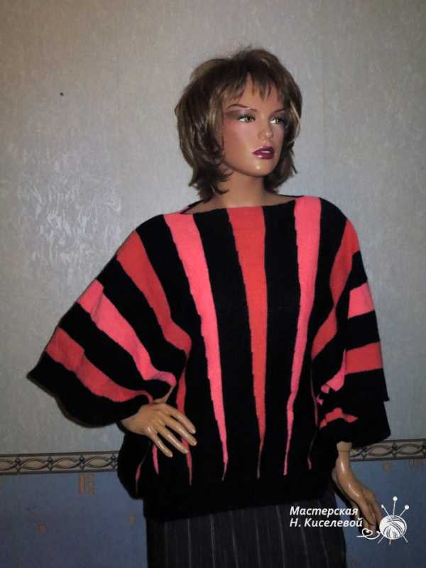 только мне показалось широко столько см. поэтому я посадила низ на резинку, горловину обвязала рачьим шагом, рукава оставила как есть