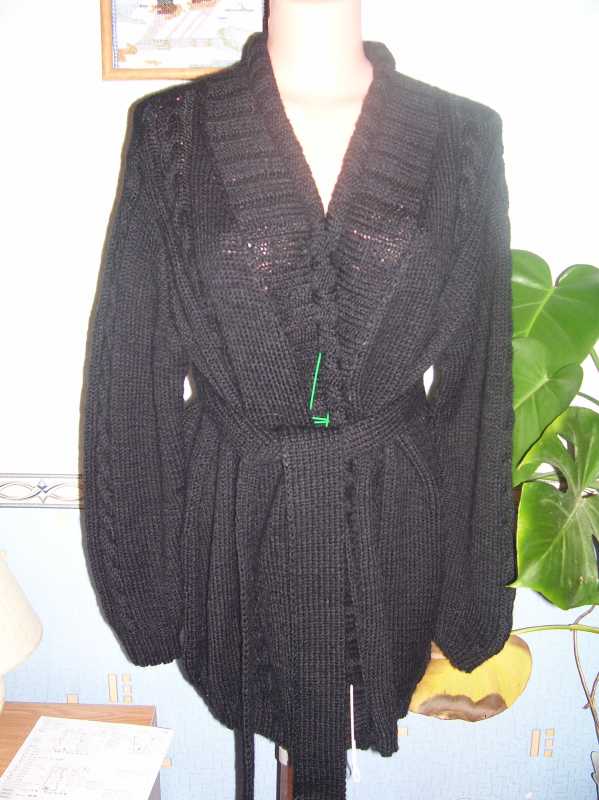 планка - резинка 3*2. сначала вязала (спицами круговыми) по прямой, а от верхней пуговицы сделала частичным вязанием, т.к. заказчице нужен был воротник-шалька. Теперь с содроганием жду ее прихода. Т.к. прошлую вещь забрала, была довольна, а через 2 недели ее дочь мне начала претензии предъявлять, типа носить не возможно. Вот теперь жду "разговора" с самой заказчицей