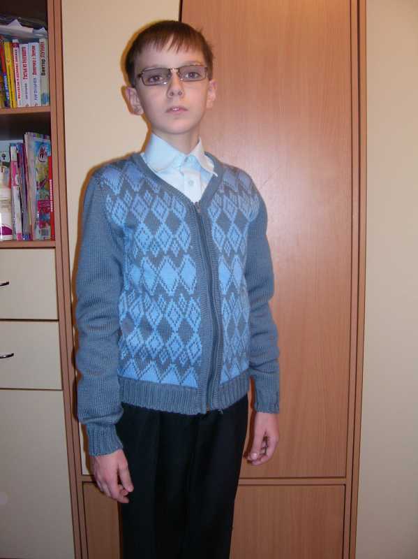 Сын такой серьезный мужчина :) кардиган ему очень подходит!