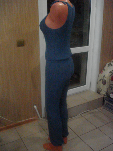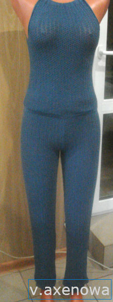 И снова здравствуйте дорогие мои,пользуясь тем,что я нахожусь в маленьком ,2 недельном отпуске,и мой любимый муж сбежал от меня на месяц в командировку,я тут развлекаюсь :haha: Связала себе брючки.но уж очень пояс мне не нравился,немного подумав,и легким движением каретки,брюки превратились в комбез.Сразу извиняюсь за качество фоток,не дружит со мной фотик ,и даже фотошоп никак я не победю :4u: Но ниточка классная немного тянется,какая не знаю,брала у Иришки,но как всегда забыла подписать ,может она подскажет :4u: