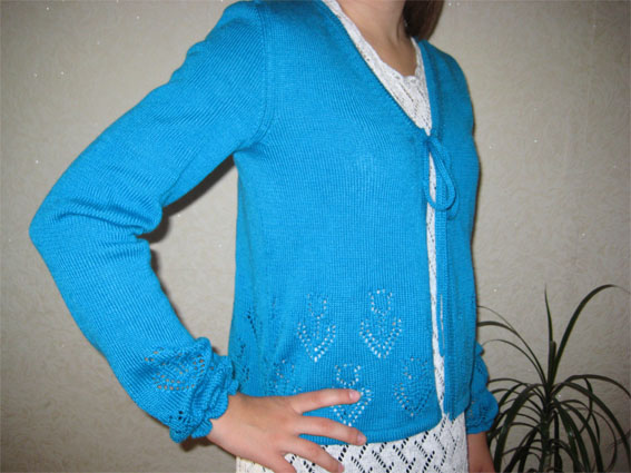 На Ваш суд. Платье, в котором так и не смогла расчитать вытачку, поэтому рискнула связать без неё. Правда, клиентке все подошло и понравилось, чему я очень рада. Хотя с момента снятия мерок она немного похудела и платье ей слегка свободно.