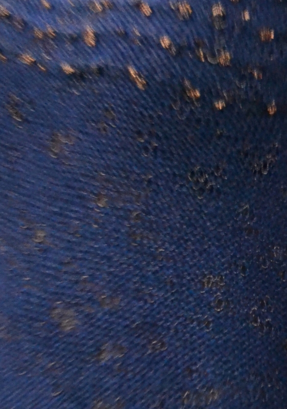 За счёт того что нить не однородная, а периодически утоньшается и более интесивно обкручена люрексом, создаётся эффект необычного рисунка.