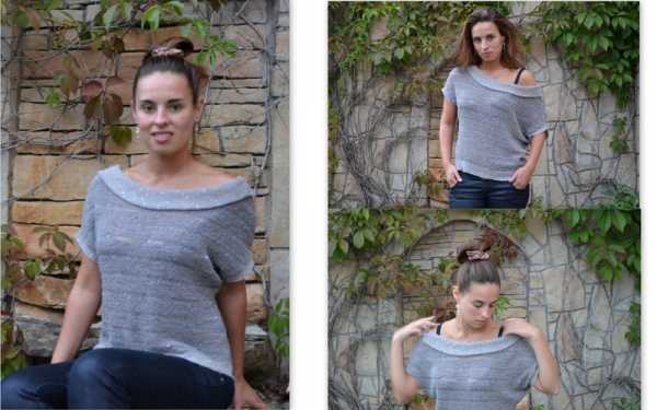 Летний свитер, основная нить -объёмная 100%хлопок ,тонкая нить-лён с шёлком(как в МК),только воротник сделала немного другим.