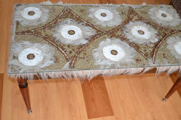 Хоть это и не вязание,но решила поделиться,как с помощью гречки,риса и зёрен кофе старый журнальный столик стал новым,другим.