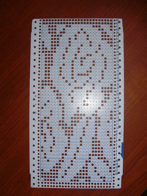 Олеся, очуметь от твоих работ! :bravo: Скажи пожалуйста, в теме "перфокарты", по-моему твоя ПК для рельефного жаккарда (сиреневое пальто). По ней вязать без удвоения рядов? :???