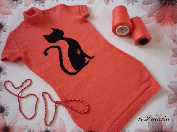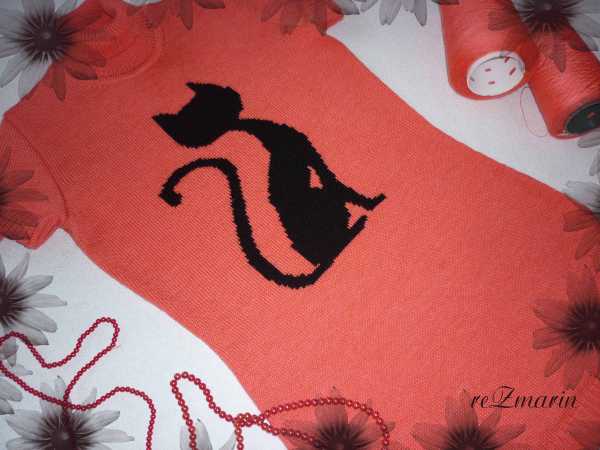 А еще у меня туничка.Связана в 5 нитей п/ш, кошка интарсией, по моей схемке :girl_wacko: