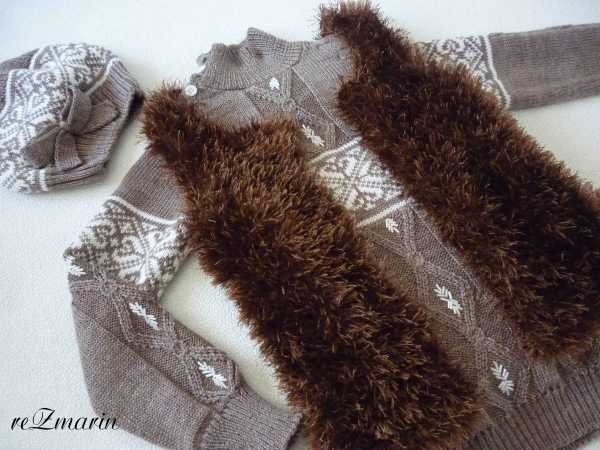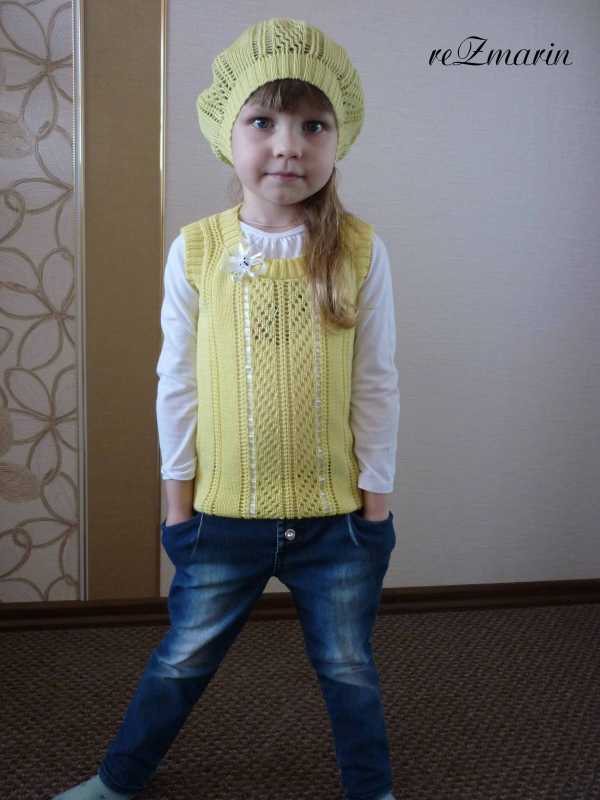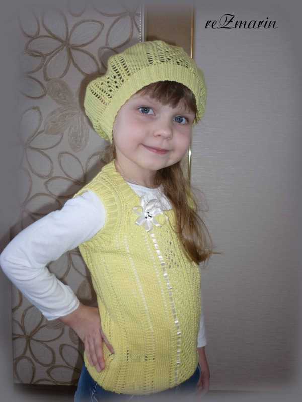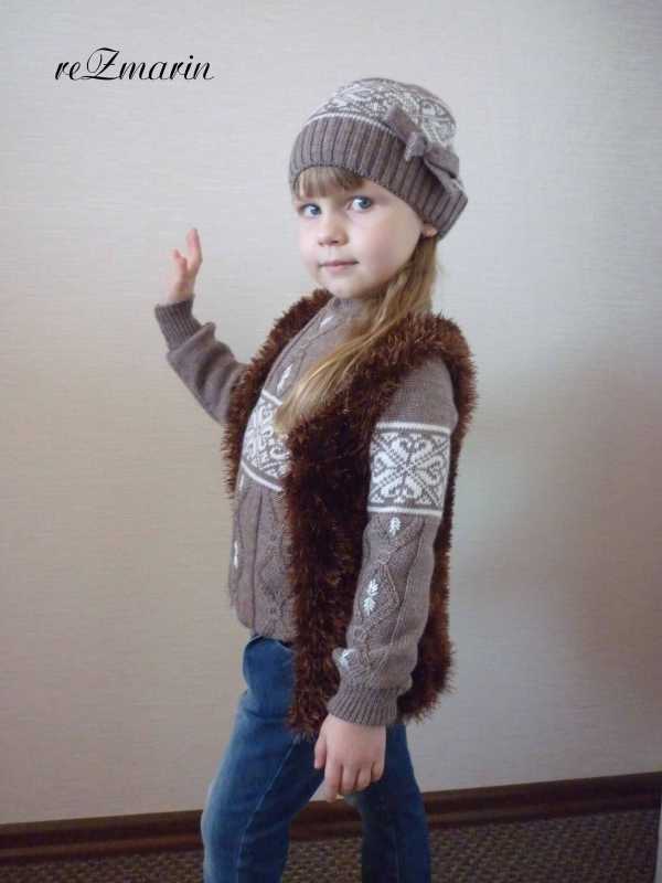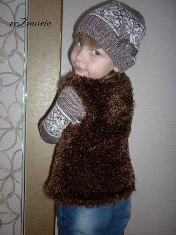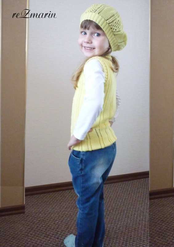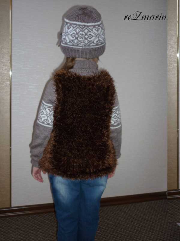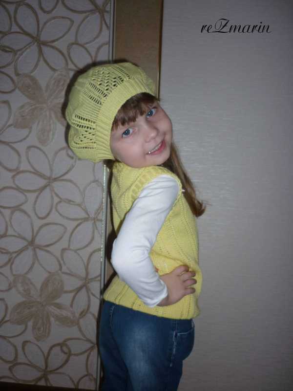 Жилет и берет в 4 нити п.ш в 4 нити. Моей модели жилет длинноват, поэтому мы его подогнули (маленькая заказчица чуть выше нас :oops: )