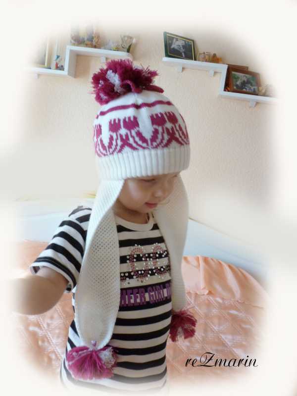 Шапочка ОФЖ, ушки - тук. Связана для крестницы, а демонстрирует дочка :drims: Шапка двойная связана по мастер-классу с сайта, за который огромное спасибо :flowers: