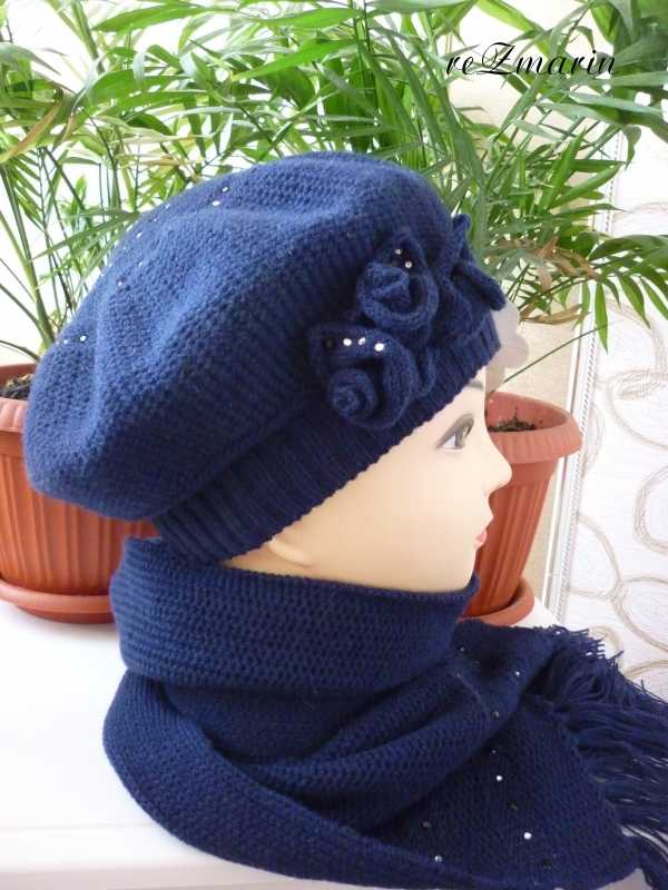 Спасибо, девочки!!!!!! Это комплектик для моей мамулички, у нее завтра День Рождения, берет "практически" двойной, связана высокая резинка и подогнута во-внутрь, поэтому внутри берета почти голова как в шапке, а с наружи берет