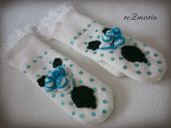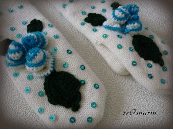 Варежки двойные "Голубые розы". Идея из интернета, автора на фото не было :???: .