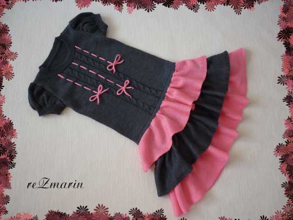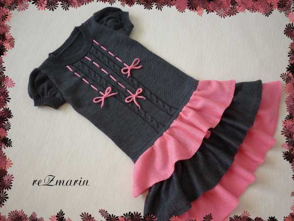 У меня новая работка. Платье п.ш верх в 5 нитей, воланы связаны поперек в 3 нити, край валанов связан полным ластиком ( чтобы не закручивался). Платье связано на высокую девочку второклассницу, поэтому оно смотрится таким длинным ;)