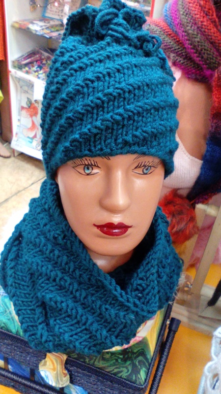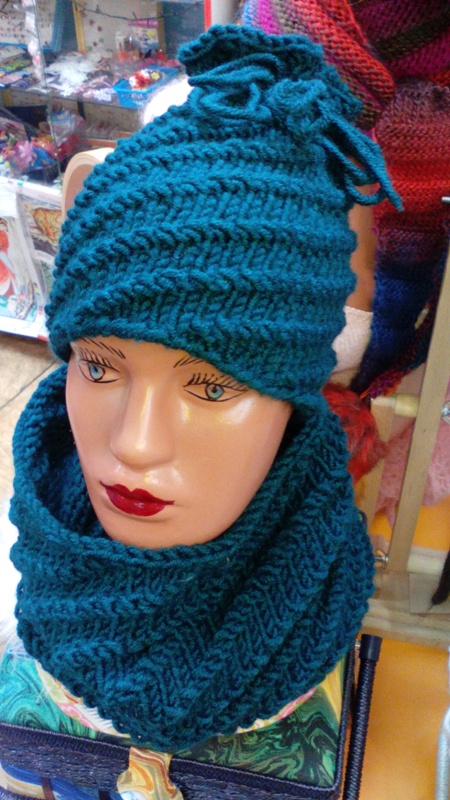 Комплект из шапочки и снуда связан без швов из толстой пряжи спицами по кругу. Шапка на чулочных №6, снуд на круговых №8. Пряжа Arktic от NAKO, узор очень прост - кол-во петель кратно 6, +1. И затем вяжешь по кругу 4 лицевых 2 изнаночных. Происходит смещение - соответственно рельефные дорожки.