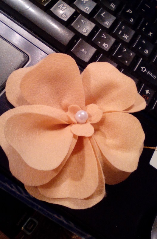 Цветок сделала как брошь, он из фетра, можно использовать и на другую вещь.