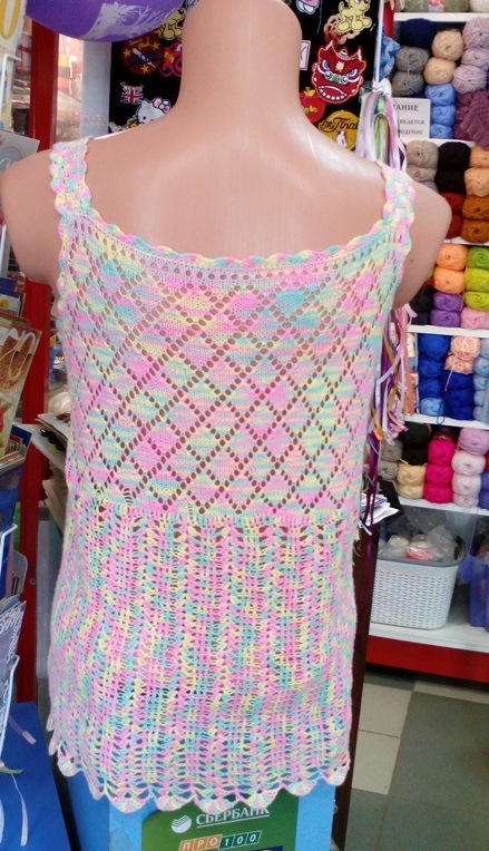 Топик "Лето" связан верх на машине, низ крючком. Пряжа LETTO 350м/50гр 75%,хлопок, 25% микрофибра
