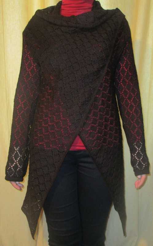 Вторая работа, не знаю, кардиган? Интересный очень.. а по какой выкройке вязала?