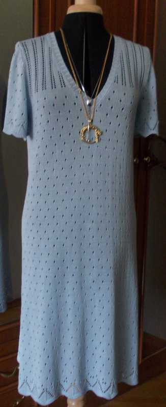 Перфокарта все та же,низ ручная работа,платье -вискоза с хлопком от Vita,очень красиво смотрица,но нитка капризная очень скручивается,,,,(прошу прощения за клонировние ПК-но мне эта простота понравилась)зимой буду вязать что то посложнее,сейчас много работы :??? :???:
