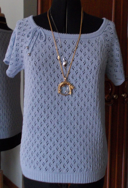 И последнее, что сегодня покажу, на этом дырки все розданы и их применение пока закончено -это кофточка по модельки от Леночки Шулены,может не с точностью, для себя любимой (брала на отдых на Кипр,отдыхала с англичанами,туманный альбион сломал шеи от моей голубки,я рада за наши ручки и за наших женщин) простите за отступление.... :oops: :kiss:
