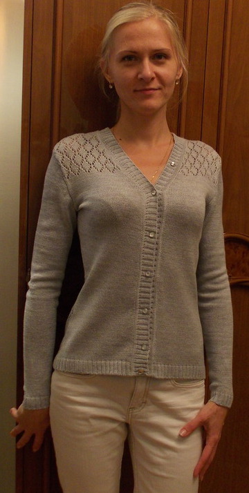 Кардиганчик очень оригинальный. Ажур по спинке - неожиданно :good: