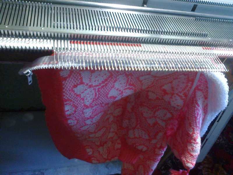 Tatyana50 .Таня , на тойоте вязать жакард конечно сложней чем на других машинах, причина в том что тойота вяжет одновременно 2 цвета(основа+ колор) но он этого стоит, главное не спешить и правильно подобрать плотность. Вязала я 2 нити основа акрил + 2 нити колор тоже акрил, на основной фантуре плотность 3 а на дополнительной 3 и две точки,дололнитильная фонтура вяжет рисунок и фон изнанки , поэтому плотность нужно подобрать свободней. в таких изделиях подклада не нужна