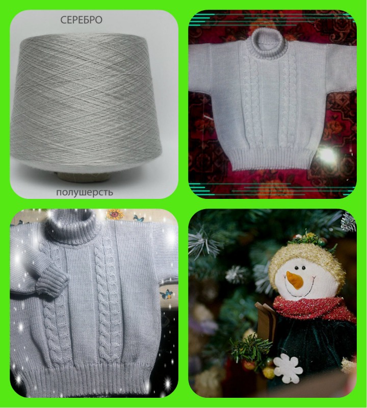 свитерок для ребенка 2,5-3 года, п\ш цвет-серебро , в 5 нитей , плот 7
