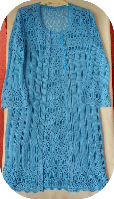 жакард с протяжками больше чем хотелось бы , поэтому спинку и перед связала сеточку -что бы вид был приличный а на рукаве подбирала декером в процессе вязания -там не видно