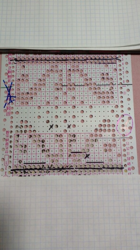 перфокарту поставить на удвоение ряда , иначе узор будет мелкий , там где черные крестики -это означает нет дырочки