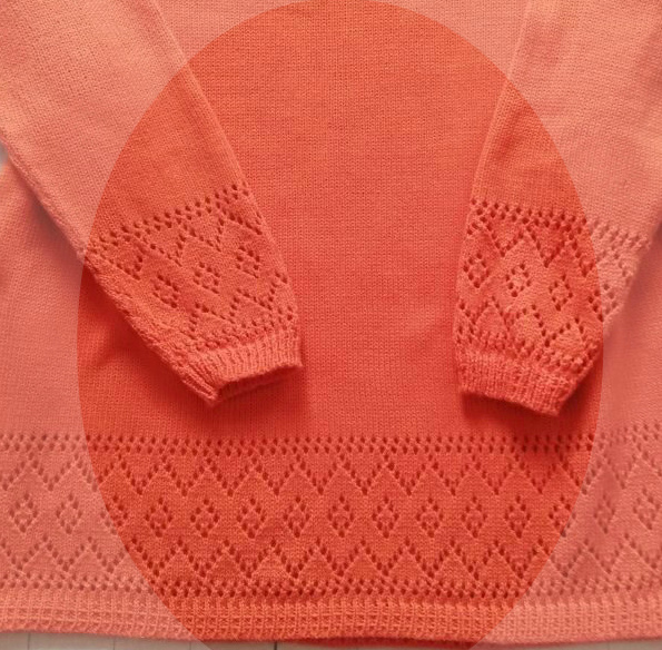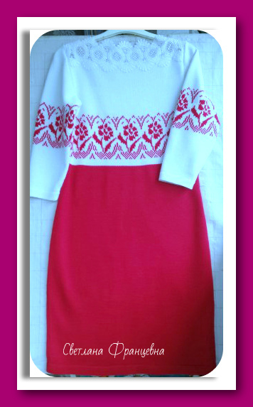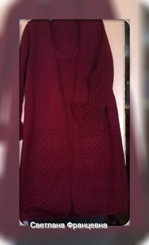 верх - по передней и задней полочки круживо, мне заказчик прислала фото и нужно было связать подобное но в красном цвете а вот оригинал фото