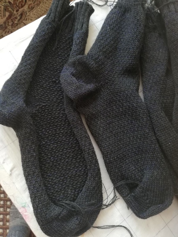 привет всем , вот эти мужские носки я назвала термо , связанны они по перфокарте 1\1 -жаккардом НО в 2 а нитивода протягиваем один цвет нити , носочки получаются не забитые очень мягкие и теплые ,на фото не сшитые носки обратите внимание на изнанку , лицевая сторона тоже интересная получается