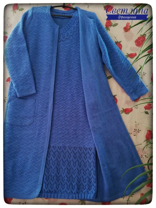 двоечка -платье и кардеган , пряжа п\ш, узор слип и ажур на тойоте 901