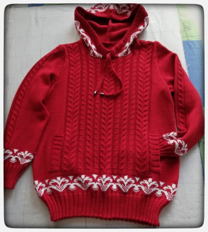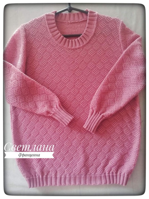 Подскажите,пожалуйста,как этот узор на розовом свитере связан?
