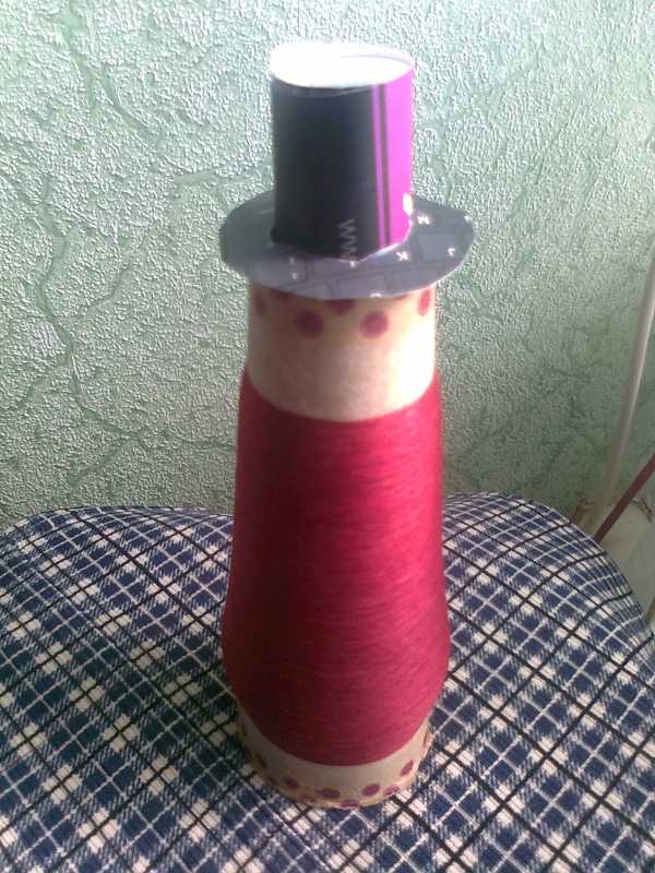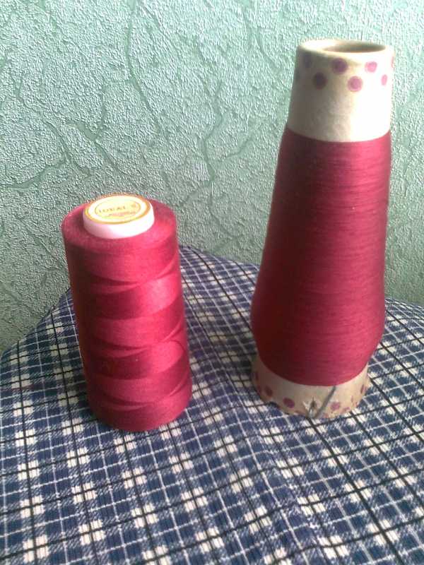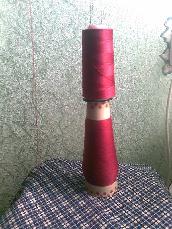 а если у вас мало места для бабин,можно поступить вот таким способом-берем лист бумаги и скатываем его в трубочку,вырезаем с картона кружочек с дырочкой одеваем сверху и устанавливаем бабинки.нить сматывается очень плавно